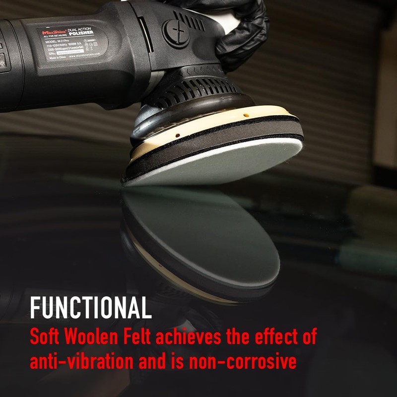 Maxshine 5” Wool Felt Polishing Pad – Hook and Loop, Compressed 100% Natural Wool, Perfect Use for Glass and Irregular Surfaces (2 Pieces)