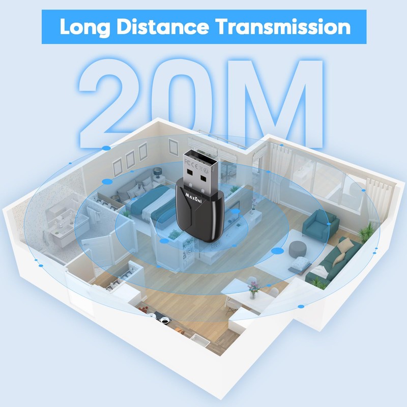 Maxuni Mini Bluetooth 5.4 EDR USB Adapter for PC, Laptop, Headphones, Keyboard, Mouse - Plug and Play, Windows 11/10/8.1
