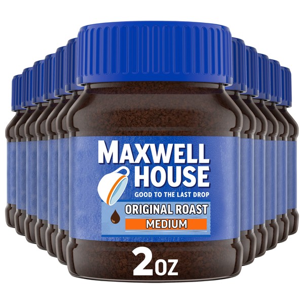 - Twelve 2 oz jars of Maxwell House Original Roast Ground Instant Coffee