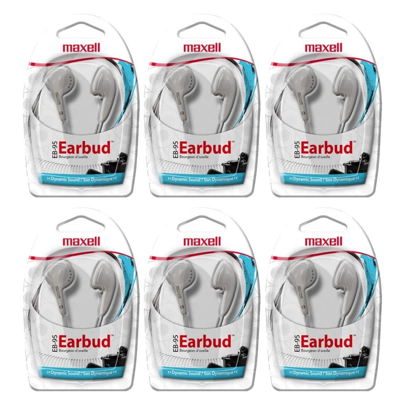 Maxwell Max190599-6 Maxell Budget Stereo Earbuds, White, Pack of 6