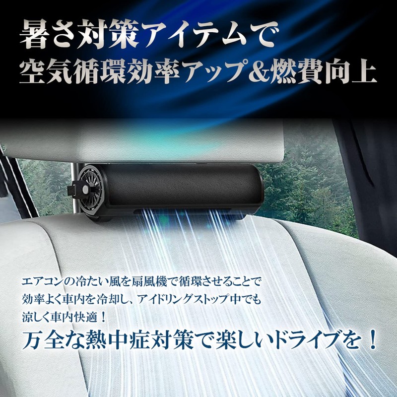 MAXWIN K-FAN13-BL Car Fan, USB Circulator, Car Fan, Headrest, 3 Levels of Air Flow Adjustment, Back Prevention, Prevents Stuffiness, Heat Stroke Prevention, Air Circulation, Energy Saving, Strong