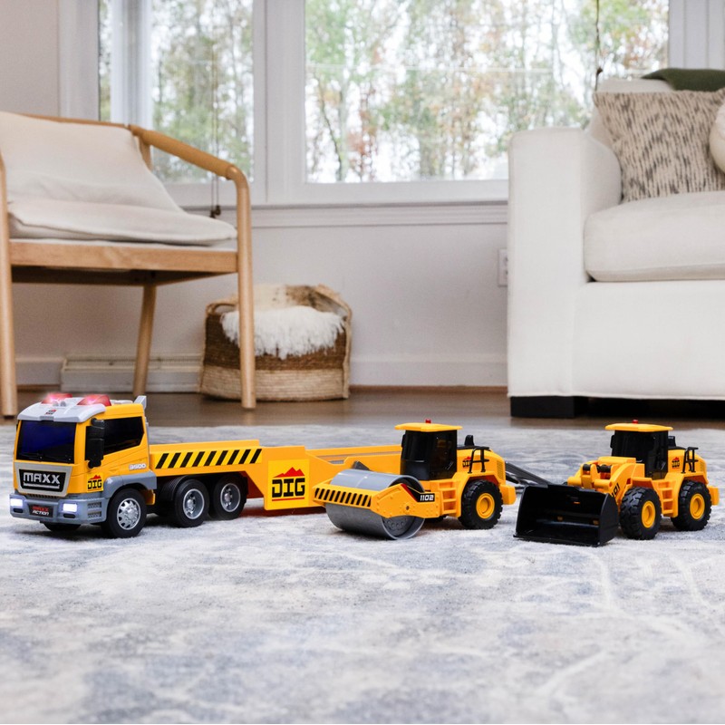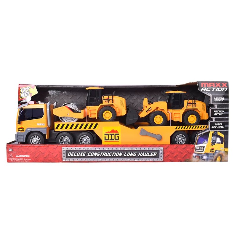 Maxx Action Deluxe Large Construction Long Hauler with 2 Vehicles, Lights and Sound, 3+