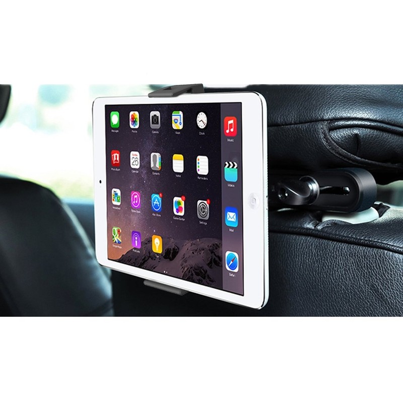This holder is as simple as it is ingenious. Thanks to the clever adjustable screw mount, the headrests are used for attachment. This functionality makes the holder so universal that it fits in almost any vehicle. Thanks to the adjustable tight holder, it is suitable for devices with a width of approx. 10 cm to 19 cm. Your mobile device is securely fixed in the vehicle thanks to the rubber padding.