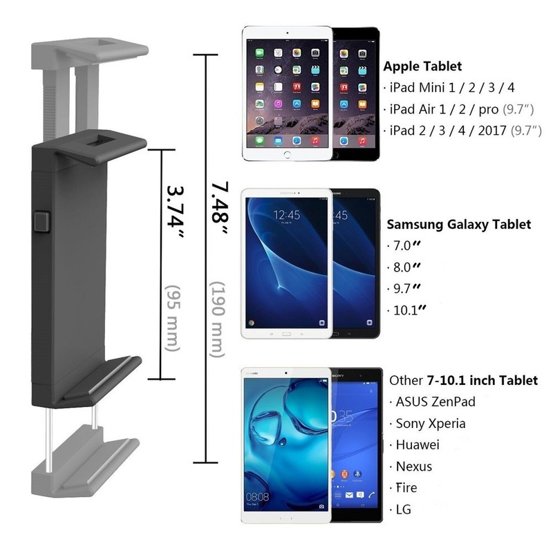 - Perfect hold with rubber-padded clamp attachment for iPad, tablet, smartphone etc. (also with case)