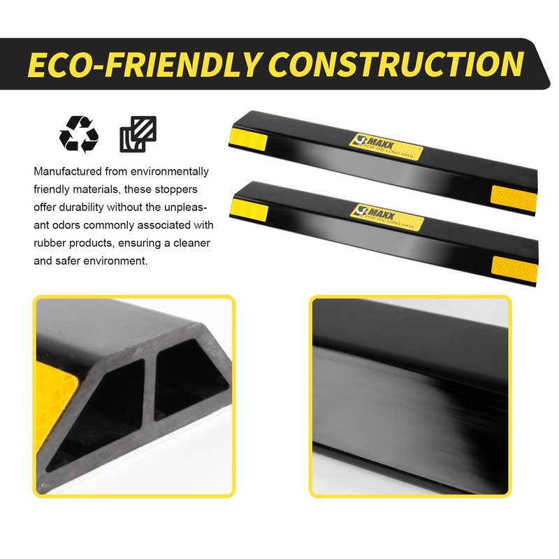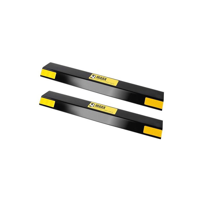MaxxHaul 51035 18 in. Heavy Duty Car Parking Stoppers 2 Pack Easy Install 18" x 1.25" x 3.5" for Garage and Outdoor Car SUV Truck Eco Friendly Material Reflective Strips