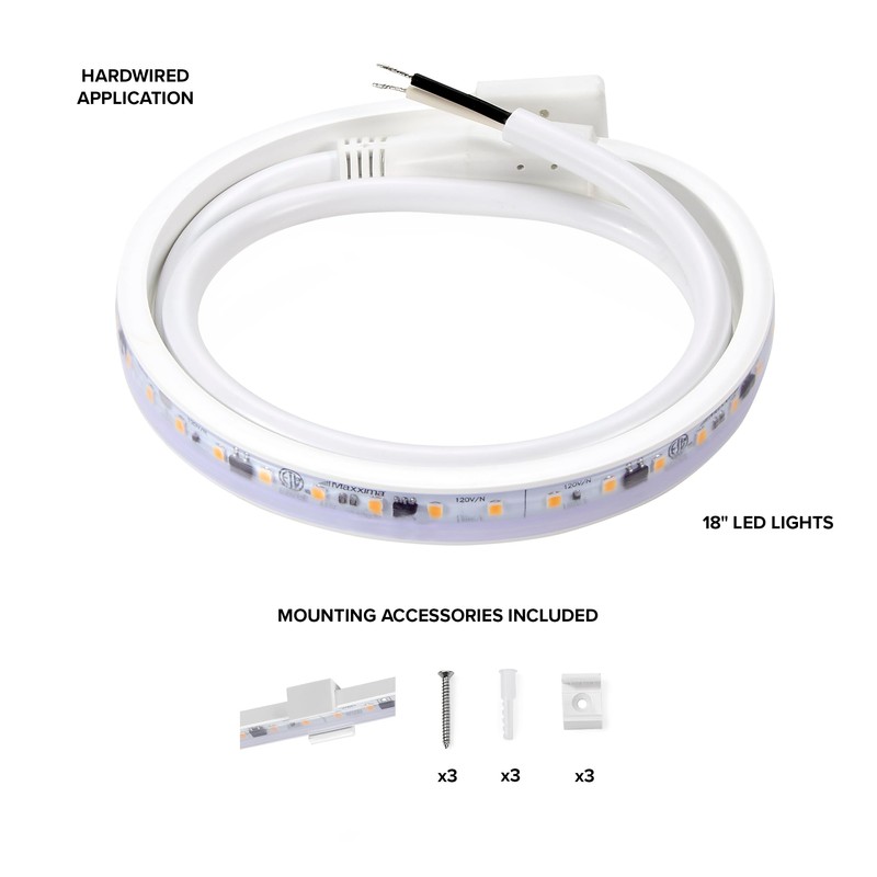 Maxxima 18 in. Hardwired LED Under Cabinet Strip Light, 690 Lumens, 3000K Warm White, Kitchen and Living Room 120V White Cove Lighting, No Power Supply Needed