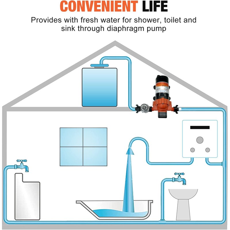 RV Fresh Water Diaphragm Pump 12 Volt DC 4.0 GPM 50PSI, On Demand Self-priming Industrial Water Pressure Pump for Irrigation Boat Sprinkler Faucet Caranvan Marine Camper Sprayer