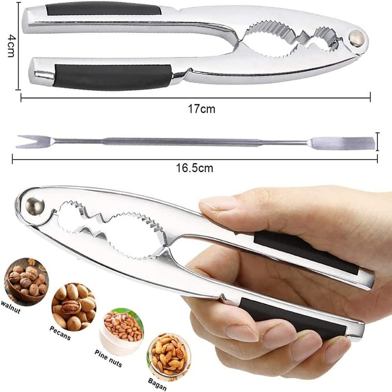 May Huang Nutcracker, Nutcracker, Walnut Cracker, Hazelnut Cracker, Stainless Steel Walnut Cracker with Non-Slip Handle and 1 Piece Stainless Steel Forks for Large and Small Nuts, Nutcracker Walnuts