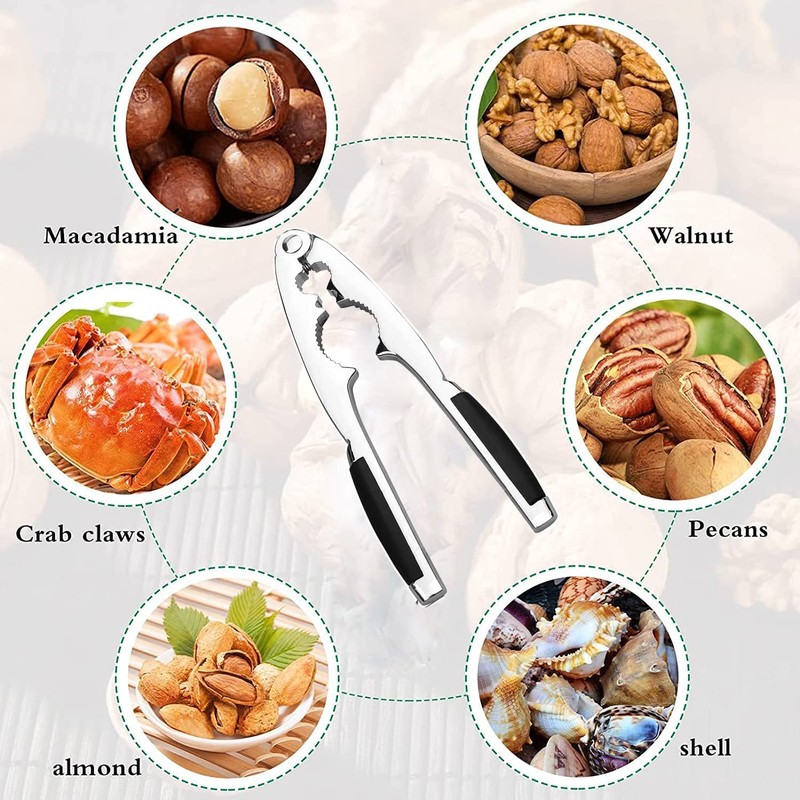 - Easy to crack: With the nutcracker, you can crack nuts, pecans, walnuts, hazelnuts, almonds, Brazil nuts, crab claws, lobster and more efficiently and easily. The nutcracker is suitable for different sizes of nuts and cracks the shell without smashing the nut core.