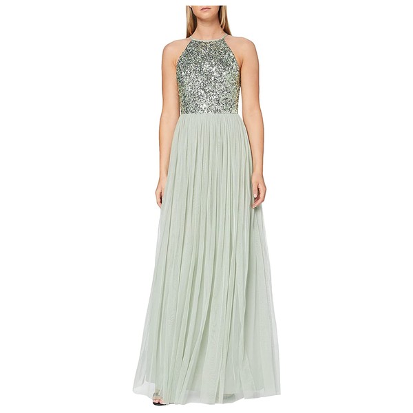 Maya Deluxe Women's Maxi Dress, Bridesmaid Halterneck, Sequins-Decorated Prom Wedding Dresses for Special Occasions, Bridesmaid Dress, Sage Green, 40