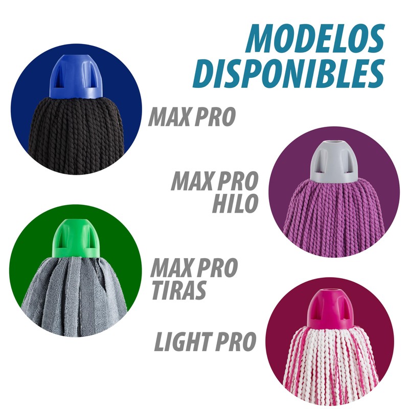 - Max Pro _ Our mop made entirely in Spain is designed for smooth floors such as parquet, stoneware, marble and vinyl floors. Available in black threads and in assorted colours: blue, yellow, red and green.