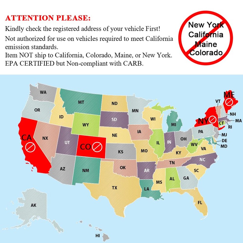 - 【Attention】 Not ship to states such as California, Colorado, Maine, and New York, etc. Please consult your state’s aftermarket converter regulations before purchase.