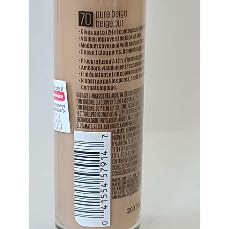 Maybelline Dream RADIANT LIQUID Hydrating Foundation BROKEN SEAL 70 PURE BEIGE