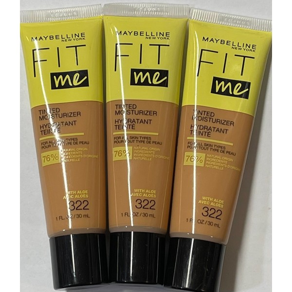 Maybelline Fit Me Tinted Moisturizer, 322, 3 Pack