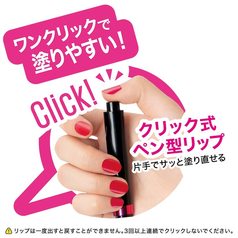 - Click pen-style lip for easy one-handed application