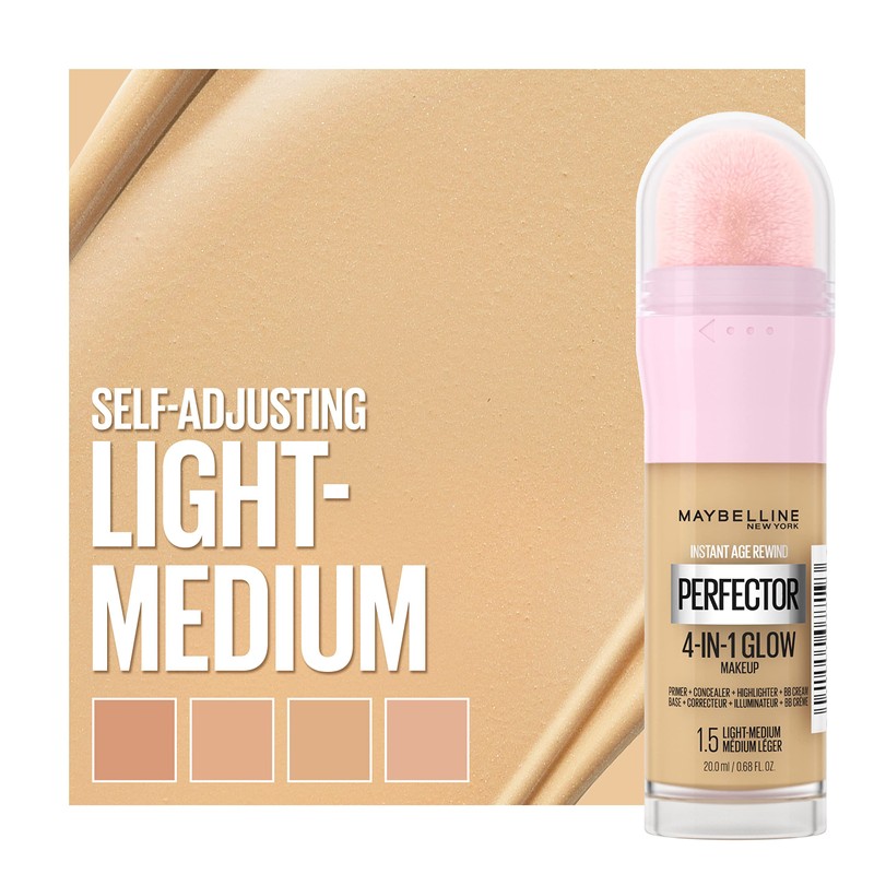 Meet Maybelline New Yorks 1st 4-in-1 makeup for a perfected glow look. Instant Perfector Glow gives skin the benefit of four products in one. Get the look of primer, concealer, highlighter and BB creamall in one easy step. It's an illuminating formula that primes, conceals, highlights, and evens skin tone with light coverage. This do-it-all makeup has everything you need to perfect your look in an instant!