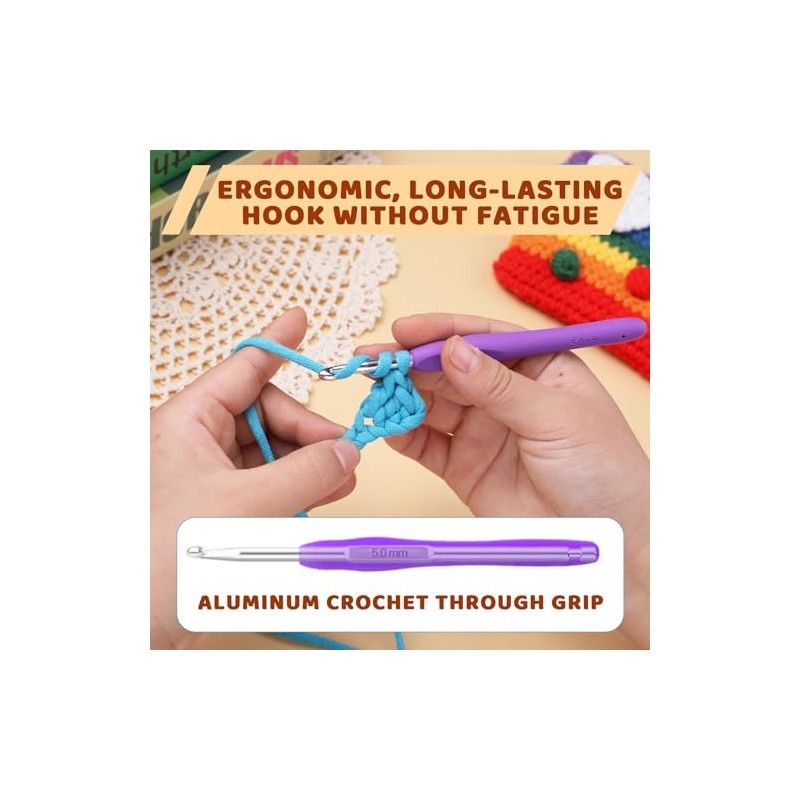 - Crochet Hooks with Handles: Our ergonomic crochet hooks with soft grip handles, can reduce or eliminate hand, wrist or finger pain. Our crochet kit is perfect for arthritic hands. Knitting needles comfortable rubber crochet handle provide a nice firm grip, you can crochet longer without discomfort