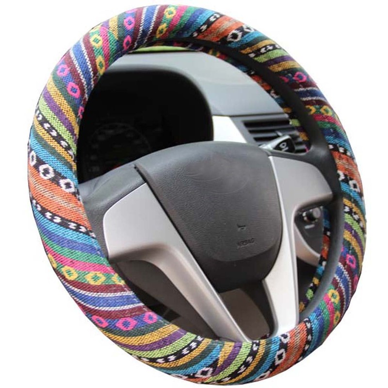 Mayco Bell 2016 Ethnischer Stil Grob Flachs Tuch Auto Lenkradhüllen Fahrzeug Lenkradabdeckung Anti-Rutsch Und Schweiß Absorption Auto Wrap Abdeckung (D)