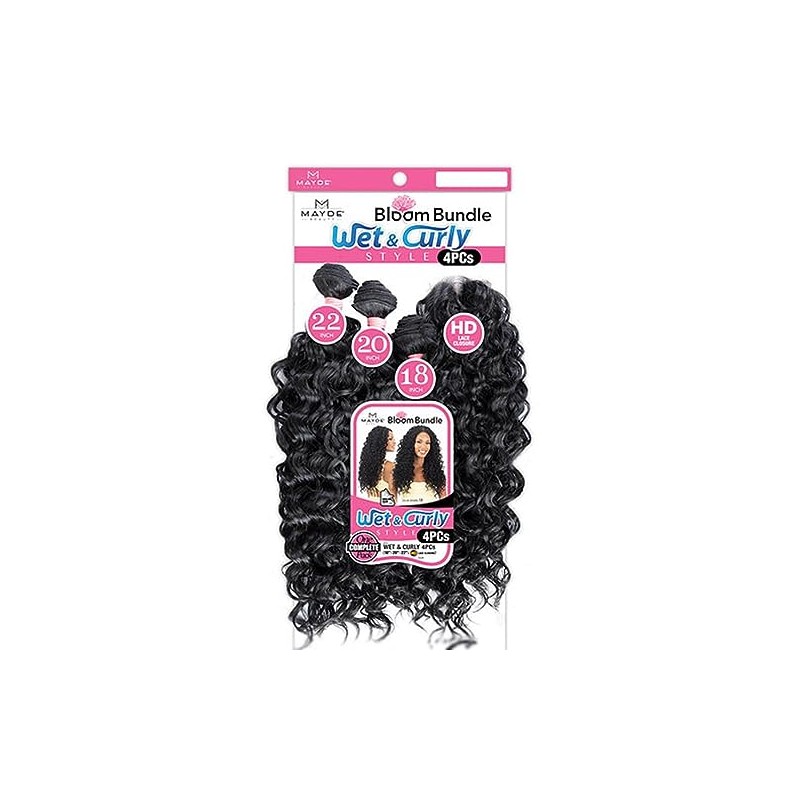 Mayde Beauty Bloom Bundle Deep Curl Weave Multipack With Closure WET & CURLY 4PCS (18"20"22"+CL) (1B)
