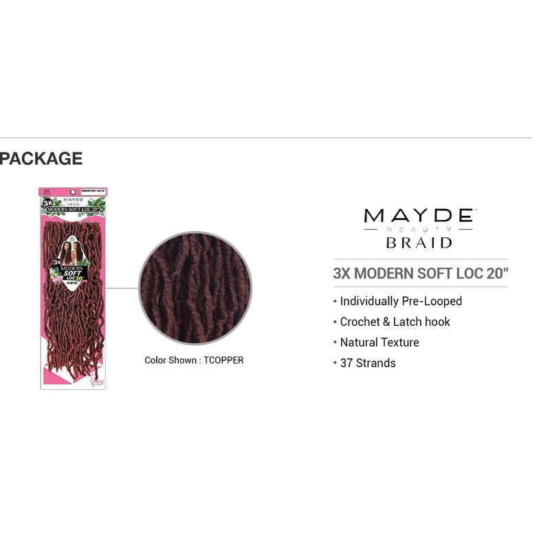 Mayde Beauty Crochet Braids 3X Modern soft Loc 20" (Pack of 5, T30)