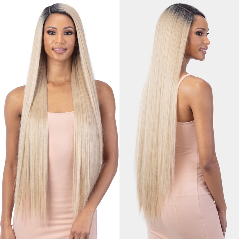 Mayde Axis HD Lace Front Wig - Sunny is a long sleek straight style with soft and blendable ear to ear HD lace with a 5" right part! Available in our special Frosted Highlight color!