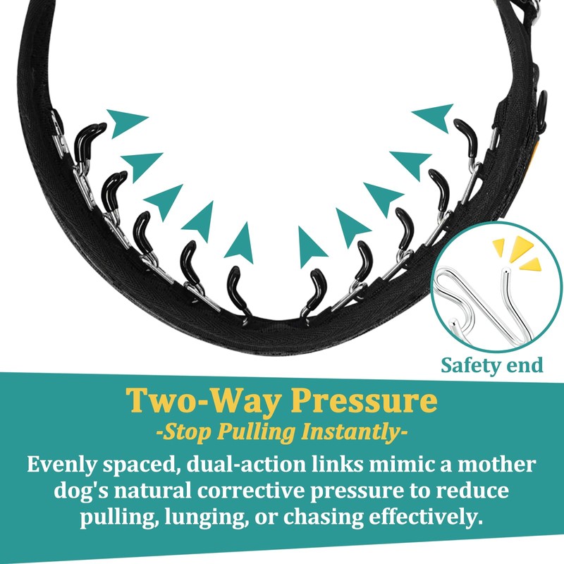 - Professional and Scientific Training: Consistent pressure by the synchronously arranged middle links, our no pull collar for large dogs is a safe and effective communication tool to teach your dog to stay beside you during daily walks instead of pulling you or chasing cars on the road. The all-polished links and soft rubber caps provide a scientific and gentle training effect, ensuring your dog's comfort and safety