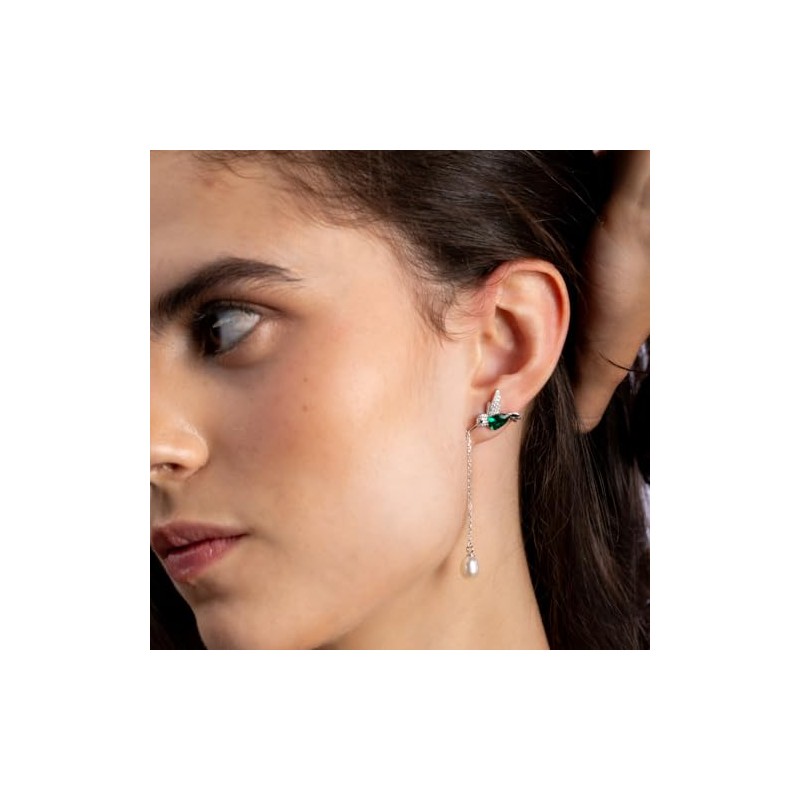 Mayfer | Aretes de plata .925 con diseño de colibrí decorado con cristal austriaco