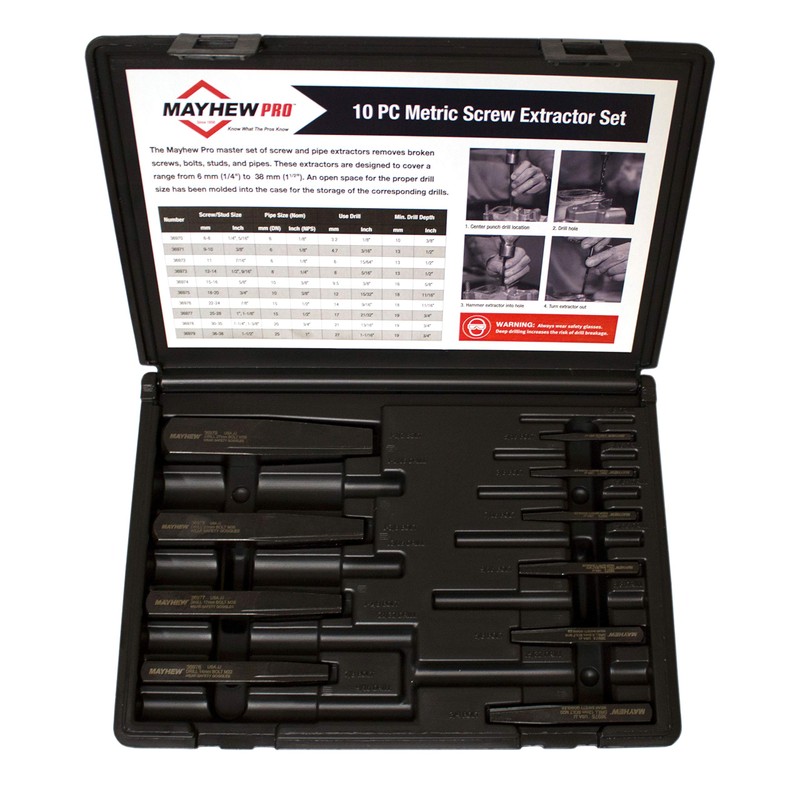 Mayhew Tools 37348 Bolt Extractor Set With Case (Metric), 10-piece