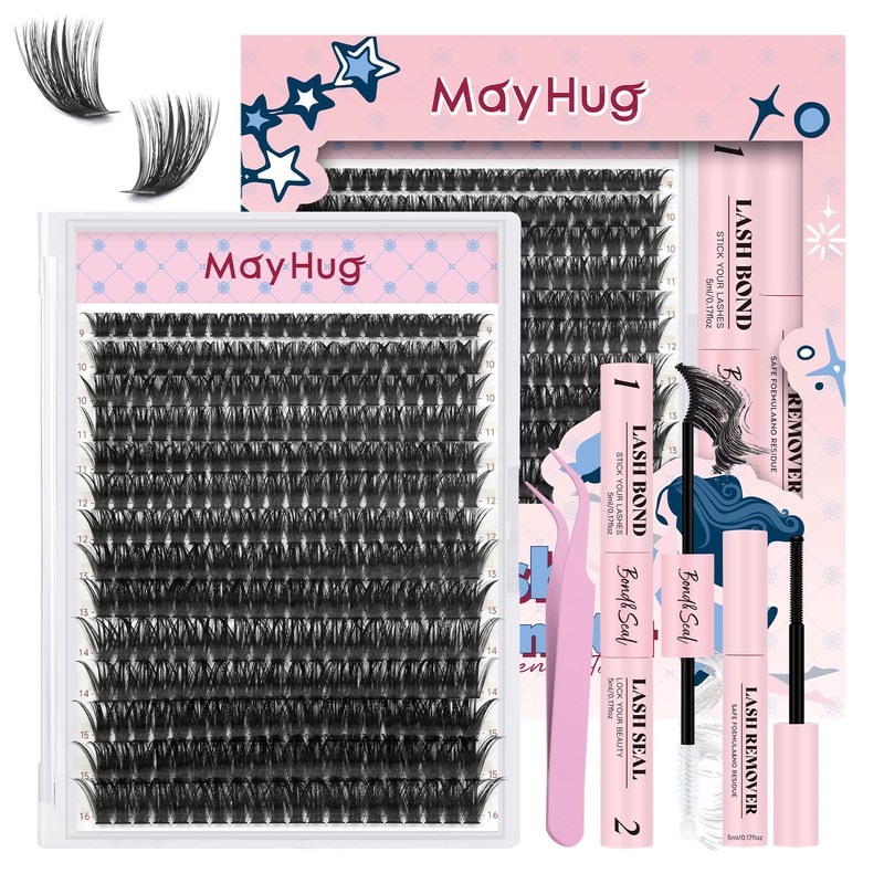 - 【DIY Cluster Extension Kit-Formulated To Be Mild And Long Lasting】Mayhug lash bond and remover combines lash adhesive glue and lash remover to remove lash glue. The professional and gentle eyelash adhesive glue and remover formula makes the fluffy clusters lashes waterproof and long lasting and quick to remove. DIY lash kit with 280pcs premium quality eyelash clusters extension 60D 10-18mm mixed, make DIY cluster eyelash extensions anytime.