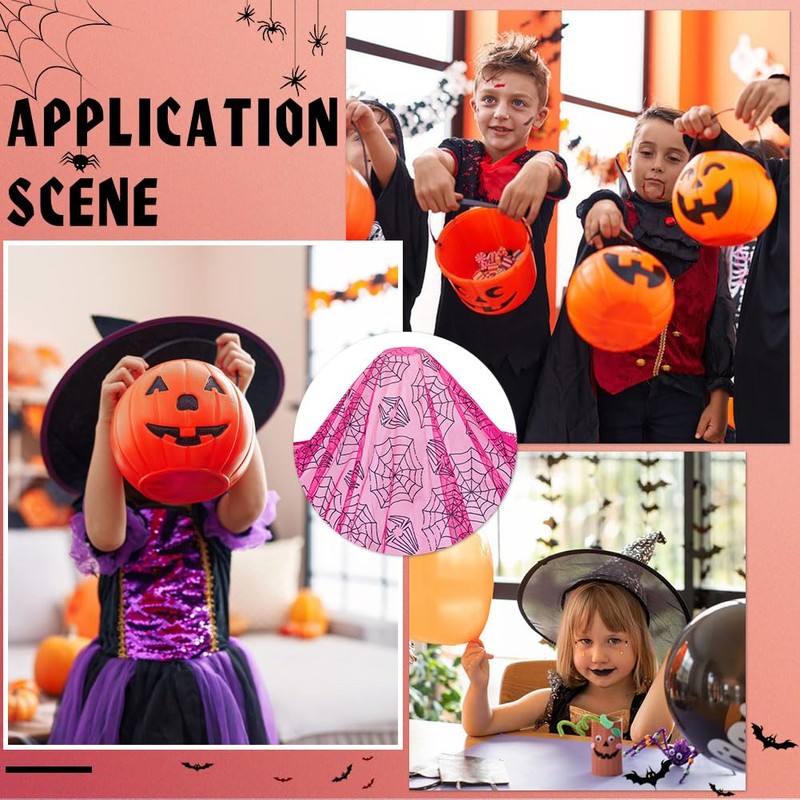 - Large Spiders and Web Design: A vibrant pink color with black spider web patterns, the large - sized spider motifs are scattered sparsely, creating a striking and playful look, perfect for adding a pop of color to your Halloween decorations.
