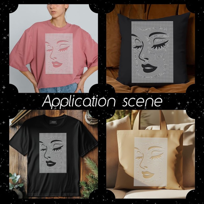 - Woman Face Design: Facial features of a woman with closed eyes pattern, eyes, eyebrows, nose, mouth, elegant and beautiful woman's face design is novel and unique, which can be used to decorate your outfit and add glamour to it.
