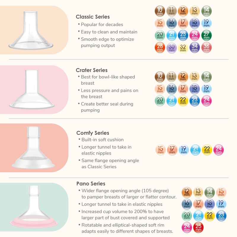 - 2x Two-Piece Breastshield (19 mm, suitable for mothers with nipple_diameter after pumping 17-18 mm). Compatible with all Medela pumps (New Medela Pump in Style with MaxFlow, Pump in style, Lactina, Symphony, Swing, Mini Electric, FreeStyle, Swing Maxi, Sonata and Harmony, Freestyle flex.