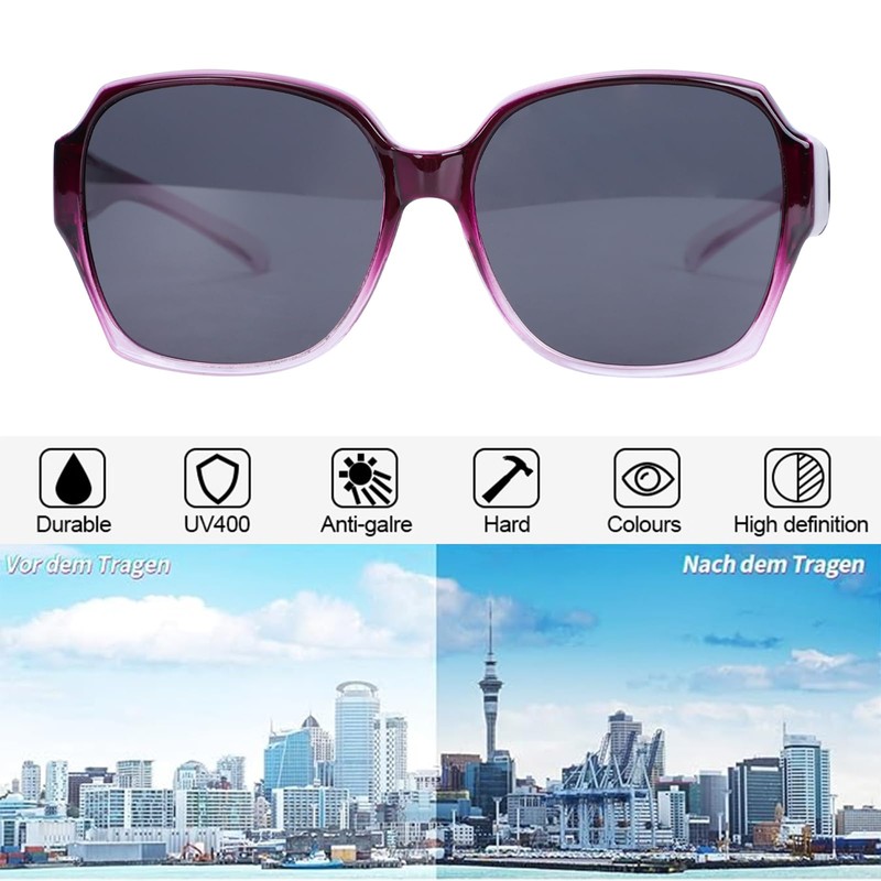 - 【COMFORTABLE WEARING EXPERIENCE】Made with scratch-resistant TAC lenses, a metal hinge structure, and comfortable nose pads, these over spectacles sunglasses provide an exceptional wearing experience. The non-slip temples ensure stability, making them suitable for long-term wear.