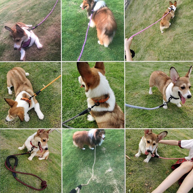 It is a kind of nylon rope leash, which has fashionable out looking, comfortable grip feeling, lightweight yet flexible and strong enough to withstand large and ex-large dogs pulling.