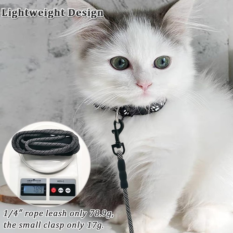The small size rope leash with 1/4" diameter is build with a little weight yet strong metal clasp. So it is a leash that your little pets can totally controlled.