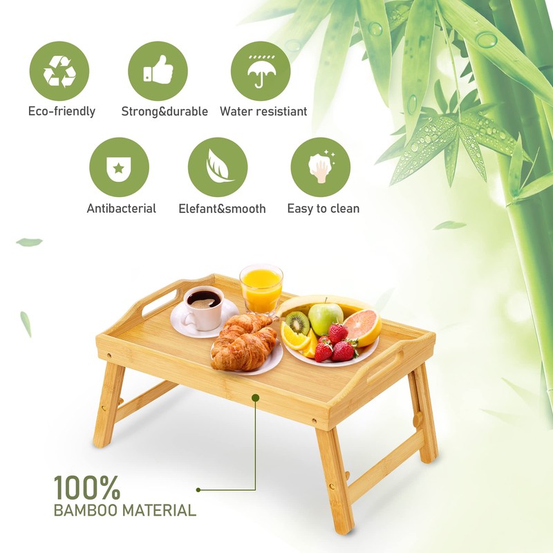 Mayyol bamboo breakfast bed tray allows you to enjoy food as you want, without worrying about liquids or food residue falling on clothes, sheets or carpets. Service tray with folding legs is easier to carry on a picnic. Suitable for gifts or personal use.