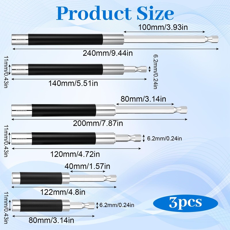- 【Package Included】The package contains three sets of telescopic extension polesrods to meet the needs of screwdriving in different situations. Easily handle screw tightening requirements at different depths and angles