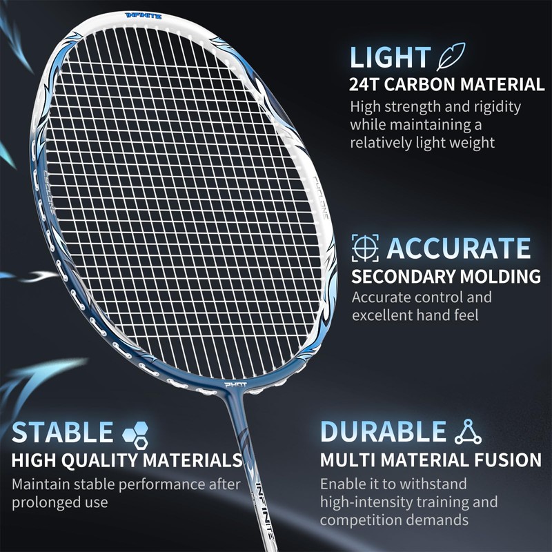 MBFISH Badminton Racket Set, Equipped with 1 Carbon Fiber Badminton Racket, 3 Shuttlecocks, 2 Replacement Grips, and 1 Badminton Bag - PHOT Series Perfect for Outdoor Sports 5U Hurricane 1P