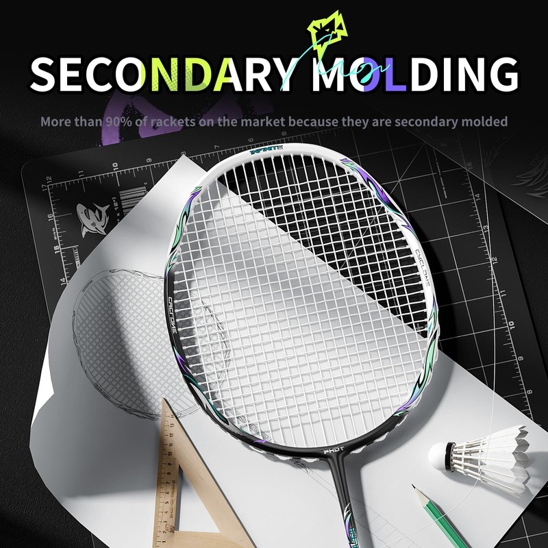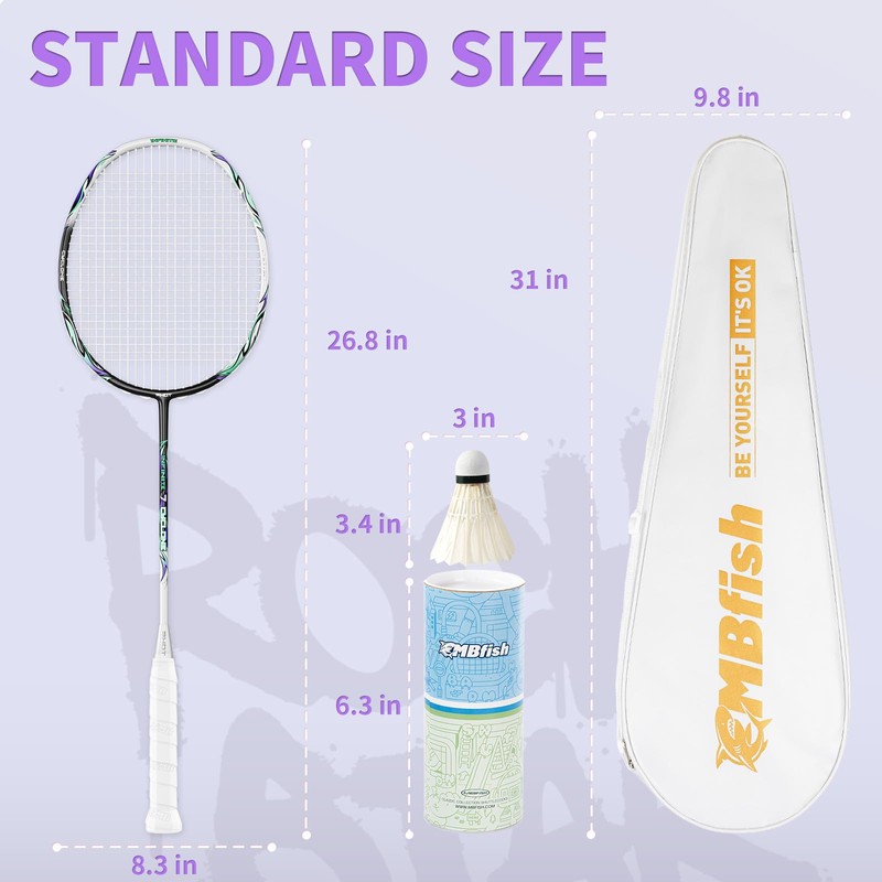MBFISH Badminton Racket Set, Equipped with 1 Carbon Fiber Badminton Racket, 3 Shuttlecocks, 2 Replacement Grips, and 1 Badminton Bag - PHOT Series Perfect for Outdoor Sports 5U Sound Velocity 1P