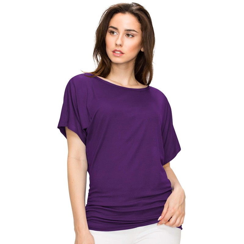 MBJ WT817 Womens Dolman Drape Top with Side Shirring L Dark_Purple