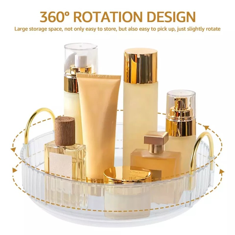 360° Rotating: Spinning makeup tray breaks space constraints, makes you put in or take out items more convenient, no need to move the organizer frequently.
