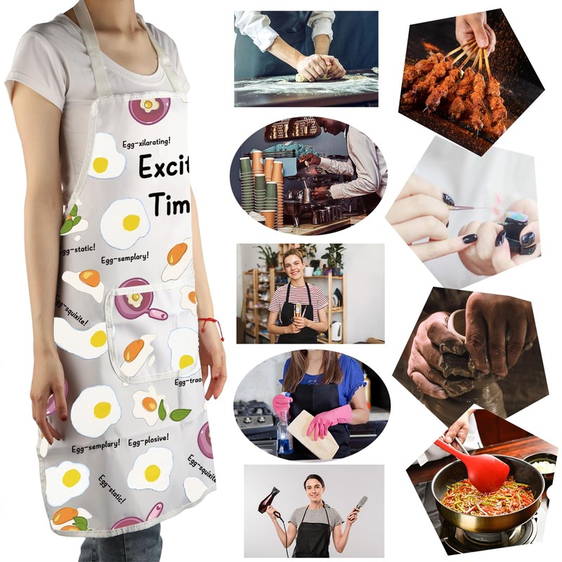 • [QUALITY MATERIAL]: Fried Egg Apron is made of 290 waterproof composite fabric, it has a unique design, with the long waist ties and an adjustable neck strap for comfortable wearing. Kitchen adjustable aprons provides superior protection from water, oil and dirty, kitchen grease, spills and food stains. Non-absorbent and washable. No harmful substances, safe for you and your family.