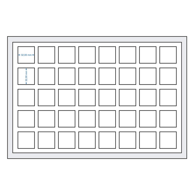 - 1 x fixed insert with 40 square fields - 32 x 32 mm, depth of compartments approx. 7 mm