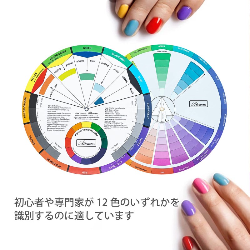 - 【高品質】コーティングされた光沢紙で作られており、色混合ガイドは引っかからずにスムーズに回転します。 この360 度回転可能なカラーホイールは、色の関係を理解するのに役立ち、選択肢や組み合わせを簡単にします。