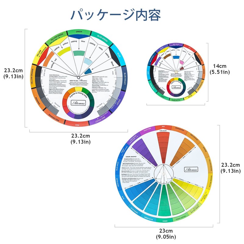 - 【パッケージ内容】カラーホイール3枚(異なるサイズ) アーティストホイールは、どの色が補完されているか、そしてどのように一緒になっているかを示すのに役立ちます。色付けの方法を学ぶのに最適です。