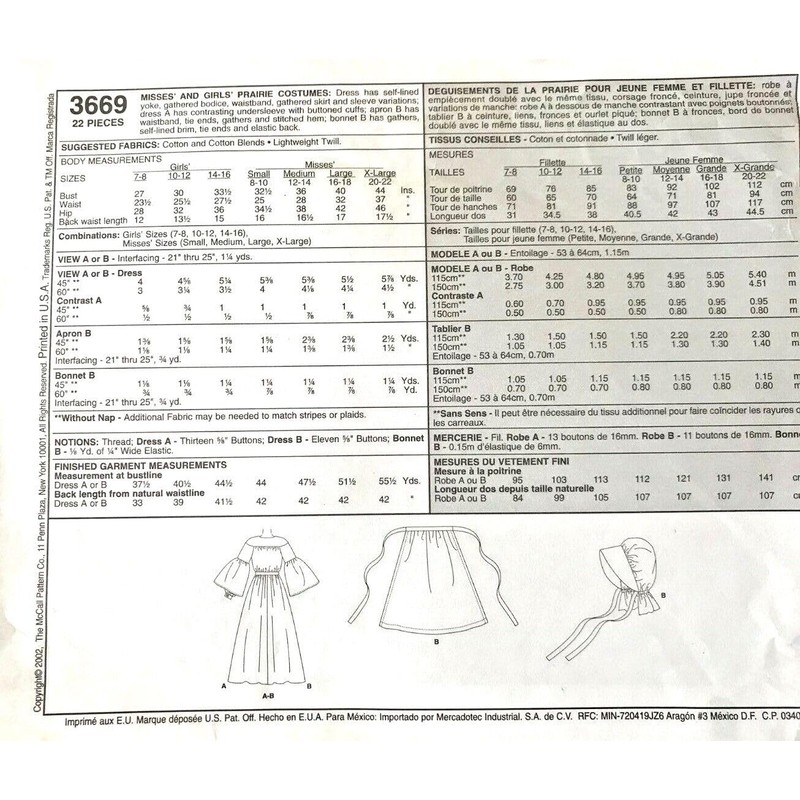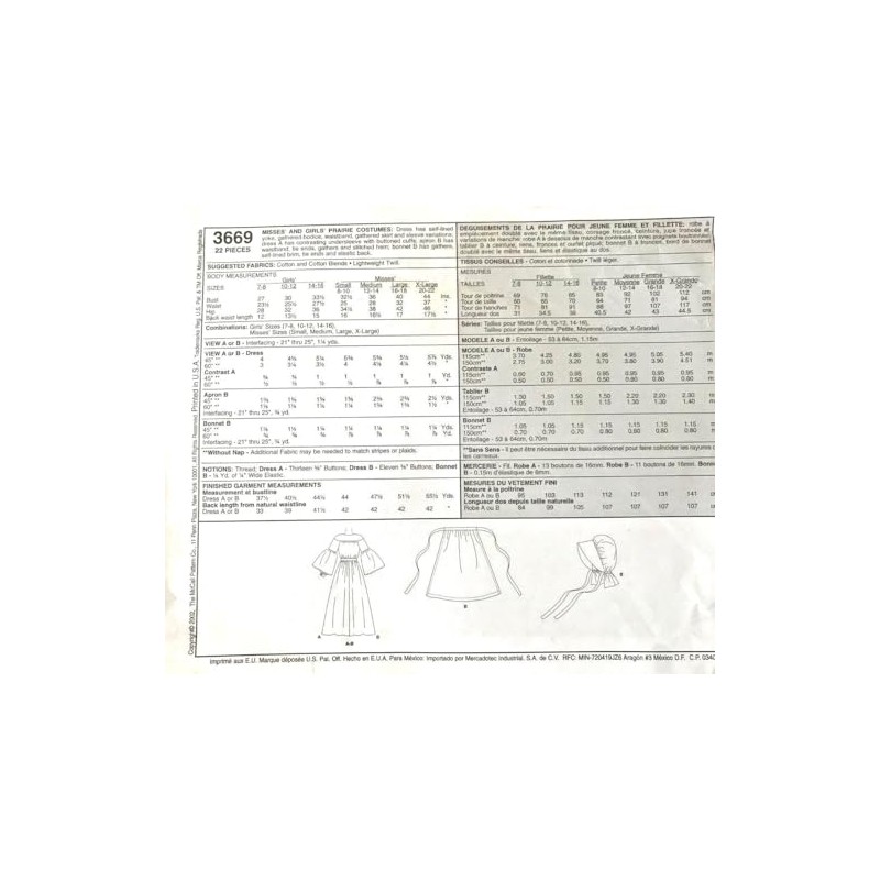 McCall's Costumes 3669 Misses' Prairie Costumes Sewing Pattern, Size 8-22