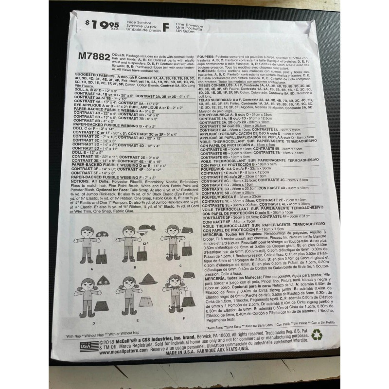 McCall's McCalls CRAFTS Pattern M7882 (6) Dolls w/Outfits - Pirates ~ Elves & More