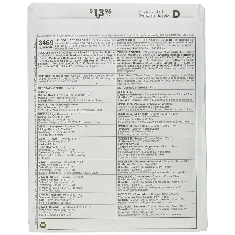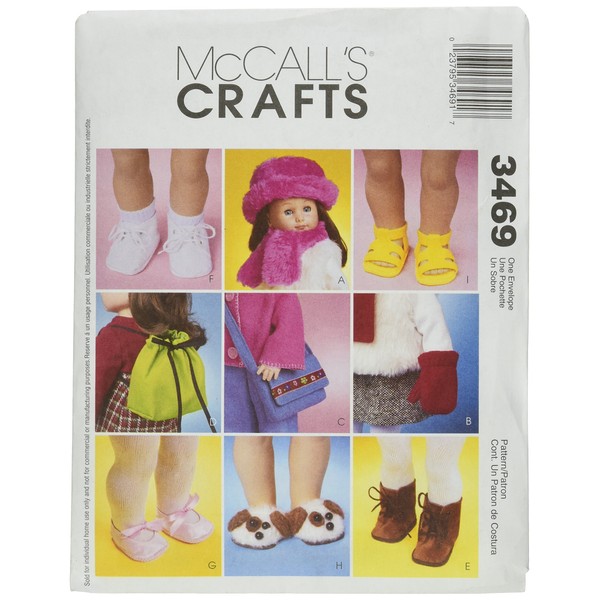 McCall's Patterns M3469 18-Inch Doll Accessories, One Size Only