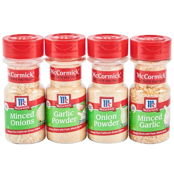 • The McCormick Garlic & Onion 4 Count Variety Pack in one set: Garlic Powder, Minced Garlic, Onion Powder, and Minced Onions