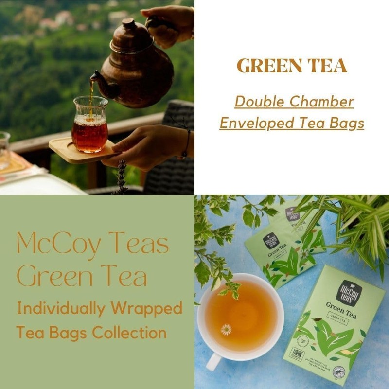 McCoy Teas Green Tea Bags Individually Wrapped Collection with Premium Tea from Sri Lanka, 20 Enveloped Double Chamber (Pack of 01)